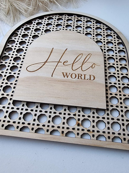 Hello World Rattan Baby Announcement