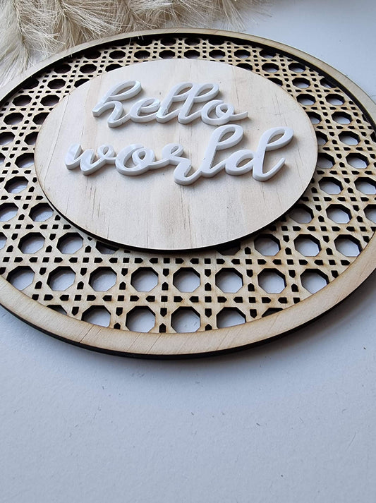 Hello World Rattan Plaque