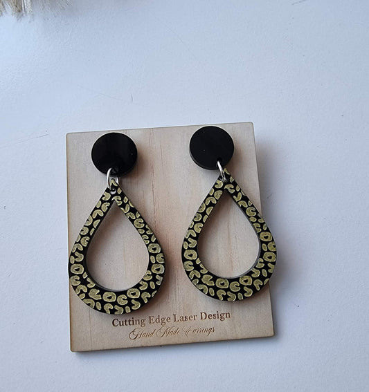 Earring "Gold infill leopard print tear drop."